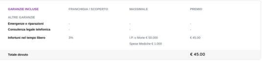 Difatti, il quantum spese mediche del caso di specie rientra nel massimale stabilito dalla polizza di riferimento: Spese mediche Euro 1.000,00.